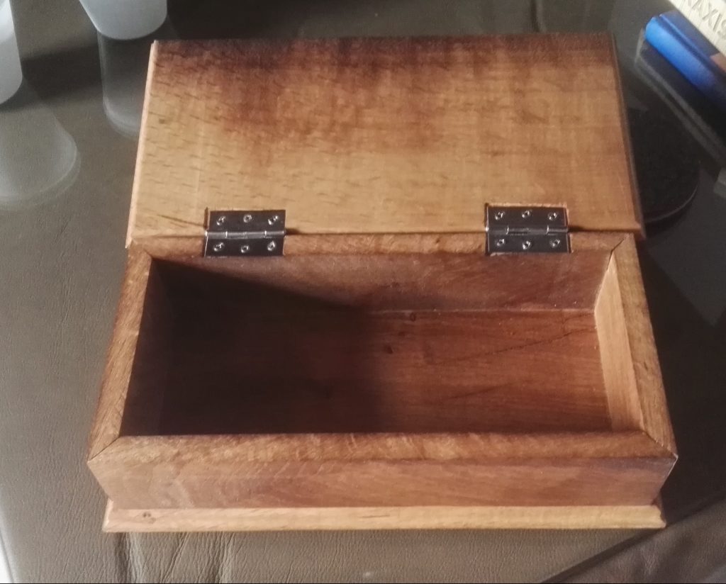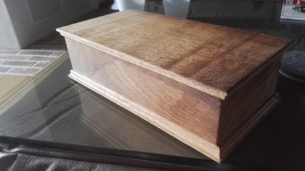Die Idee kam mir als wir zu einer Hochzeit bei Freunden eingeladen waren. Das hier abgebildete Kästchen ist aus Eiche, die ca. 200 Jahre alt ist. Da das Paar mit der Hochzeit eine eigene Familie gründete, haben wir ein kleines Geschenk und einen Brief hinzugetan, in dem wir dem Paar gewünscht haben, dass Sie wunderschöne Erinnerungen den bereits gesammelten Erinnerungen des Holzes hinzufügen mögen. Unsere Freunde haben sich sehr gefreut und dem Kästchen einen Ehrenplatz in Ihrem Zuhause gegeben.